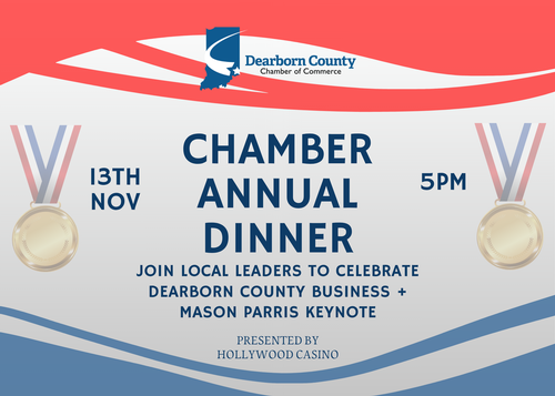 We are thrilled to invite you to the 2025 Dearborn County Chamber of Commerce Annual Dinner, presented by Hollywood Casino, on November 13th beginning at 5:00 PM. Join us for an evening of celebration, networking, and honoring our outstanding businesses and leaders at one of our most anticipated events of the year!